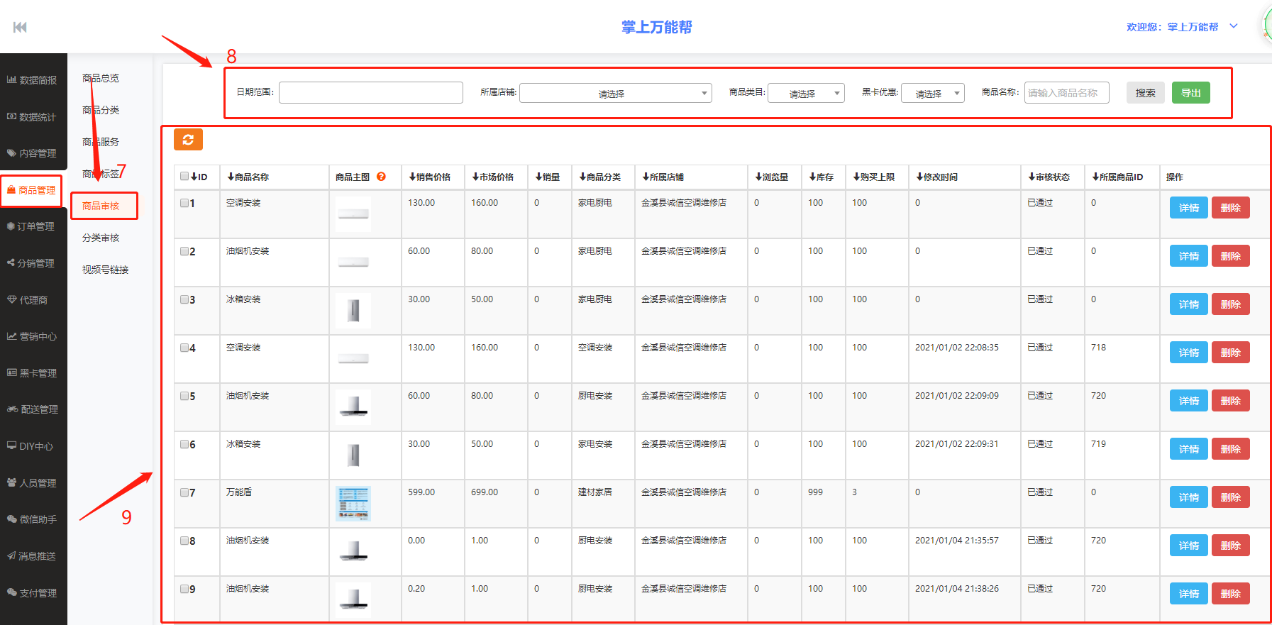 三、912YD同城服务小程序数据商品管理介绍教程中商品审核教程内容,如下图所示:
