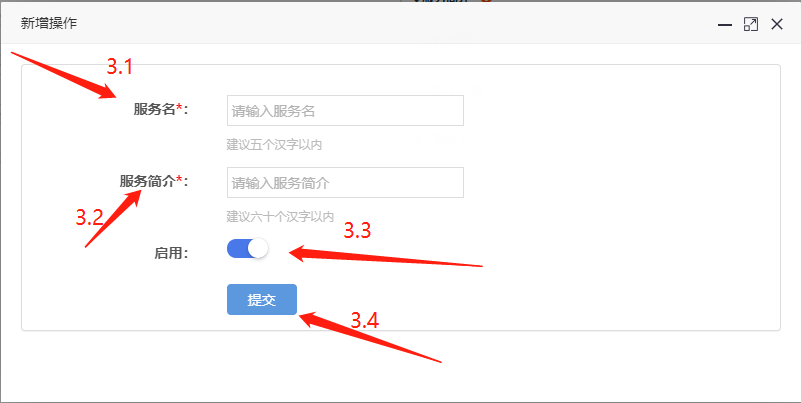 3.2、服务简介:在此填写所需要添加服务的服务简介内容。