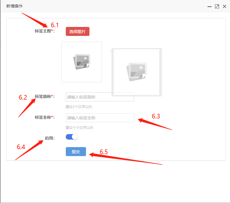 6.1、标签主图:在此上传所需要添加标签的标签主图内容。