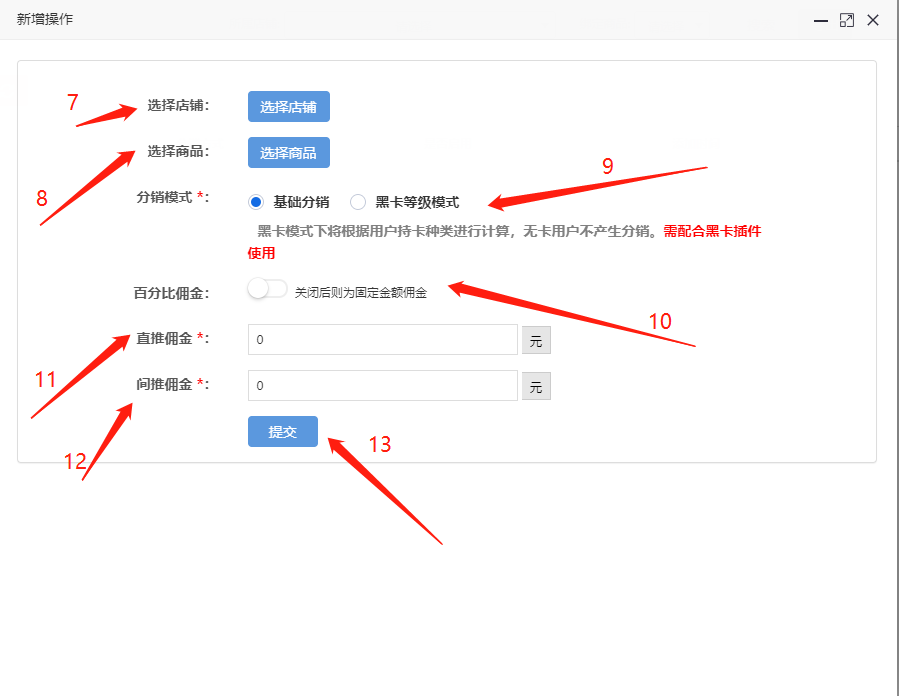 11、直推佣金:在此输入所需要设置的直推佣金内容。