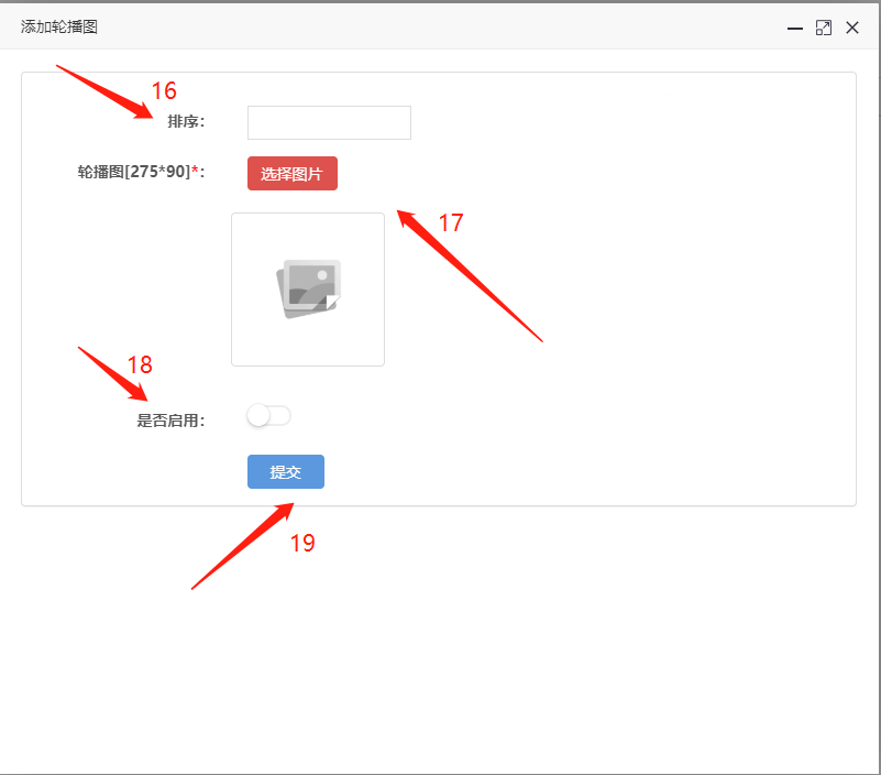 16、排序:在此输入所需要添加轮播图的一个排序内容。