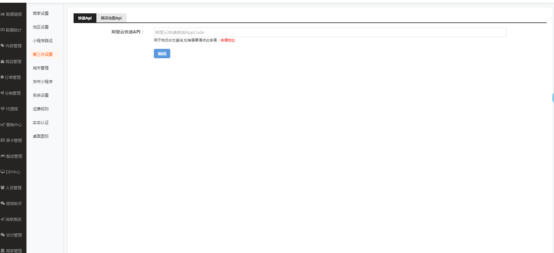 第三方设置:用于物流状态查询,腾讯地图用于根据实际情况路线计算距离