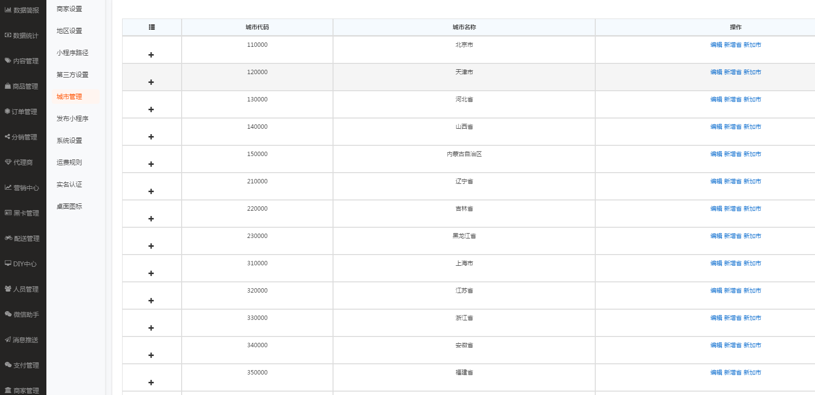 城市管理:这里可以看见城市的代码,也可以新增城市代码