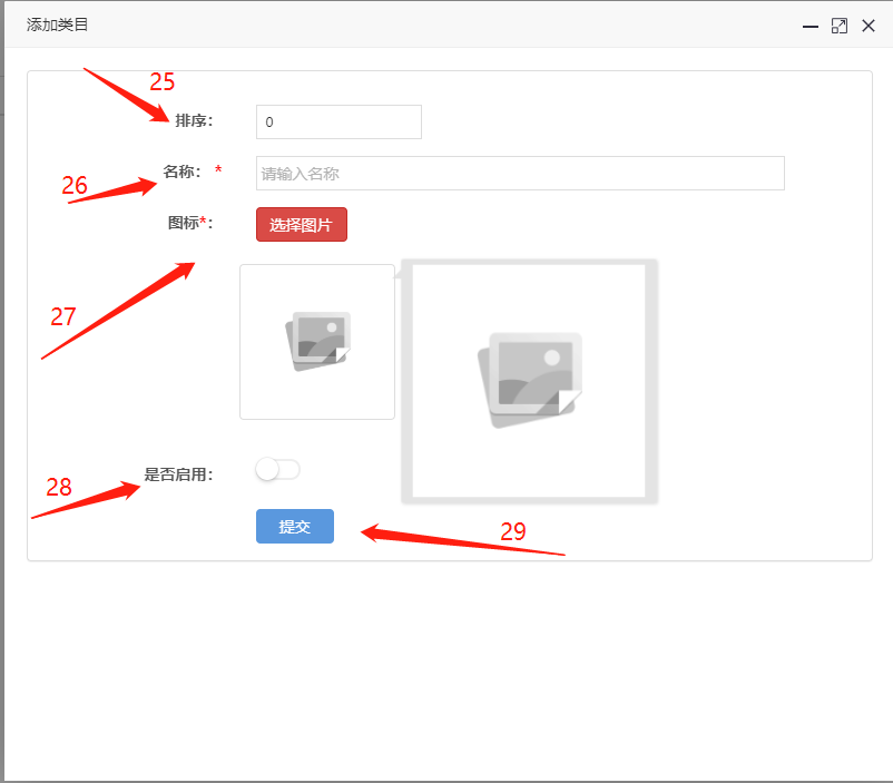 25、排序:在此输入所要添加商品分类的排序内容。