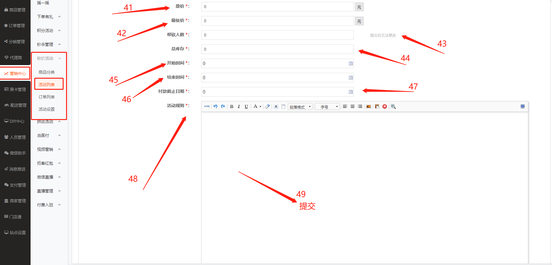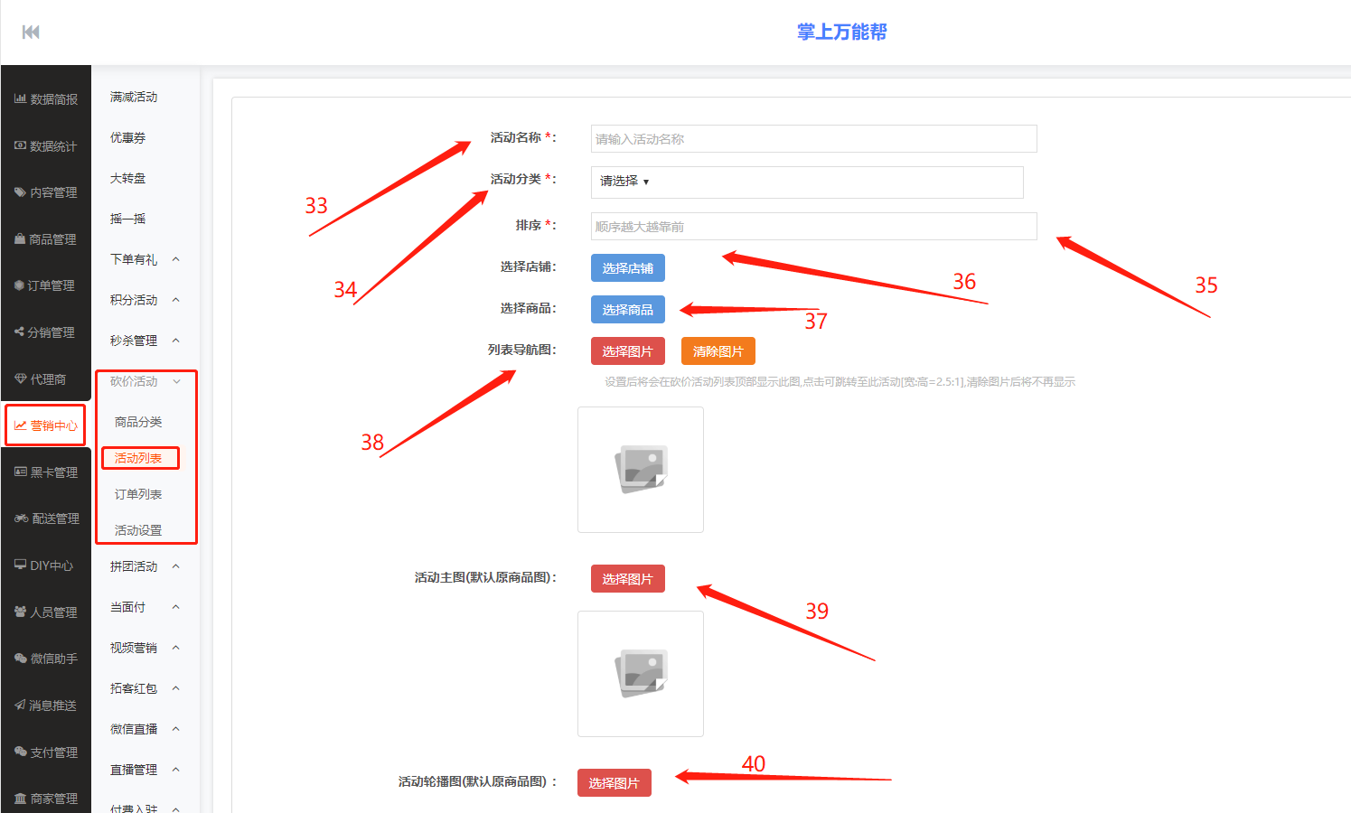 43、帮砍人数:在此输入所要添加活动商品的帮砍人数内容。