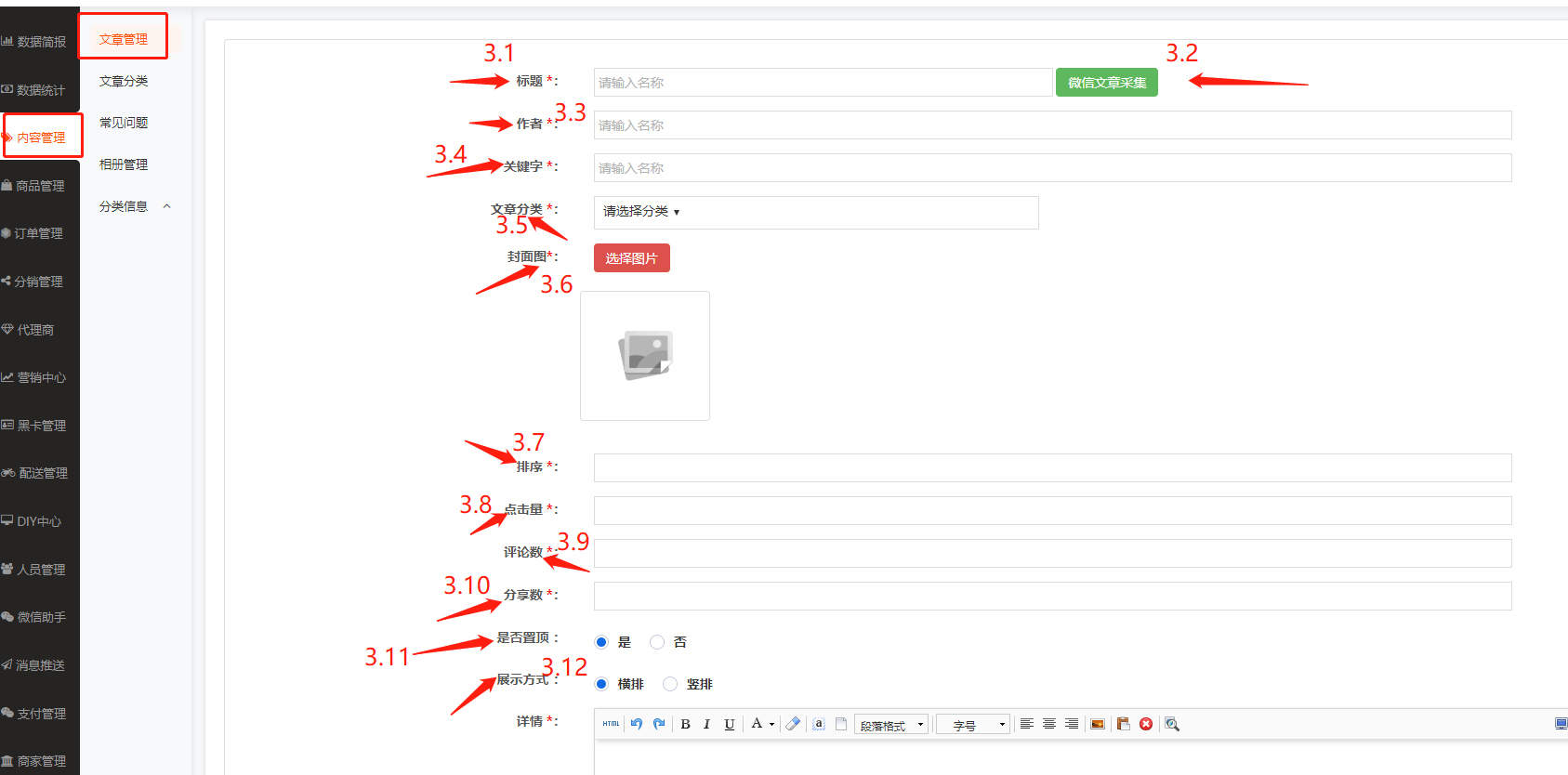 3.13、详情:在此输入顾客进入平台所观看到文章数据内容详情。