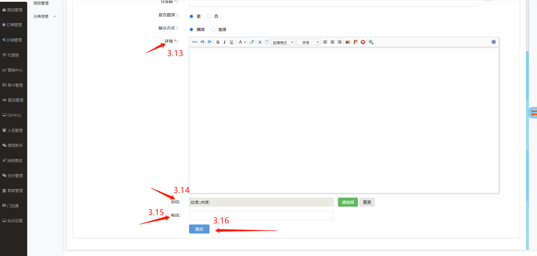 3.16、提交:输入好前面所有的需要添加文章内容后点击提交就可以使文章发布出去。